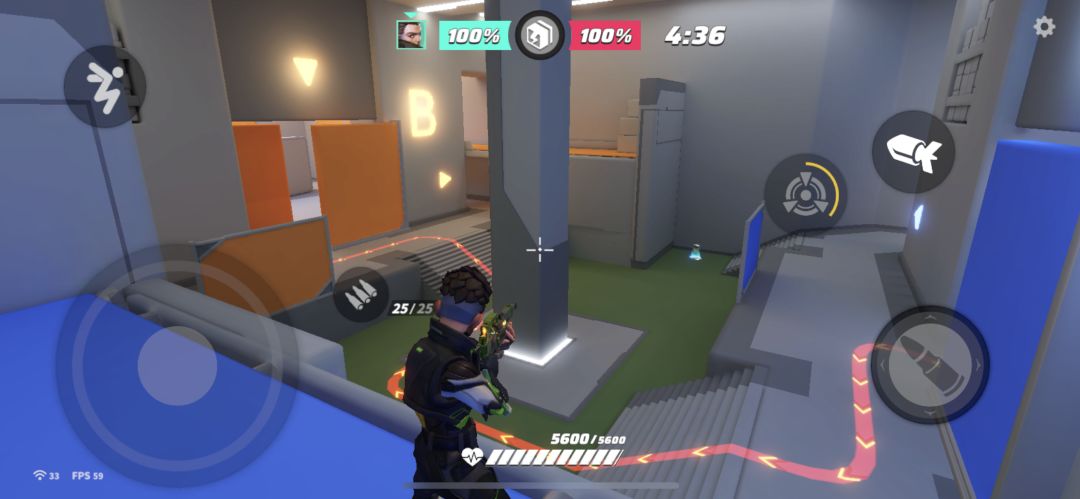我们需要两把长枪去抢占这个二楼高台,拿下高台之后我们有着绝对的对枪优势和一览无遗的视野,这个时候只需要配合一楼的队友慢慢推进就能在中场取得绝对的优势。一楼的队友主要是阻击和慢突破,自己找机会,在阻挡敌人rush的时候自己要顶的住压力,然后找机会去嫖一点伤害。