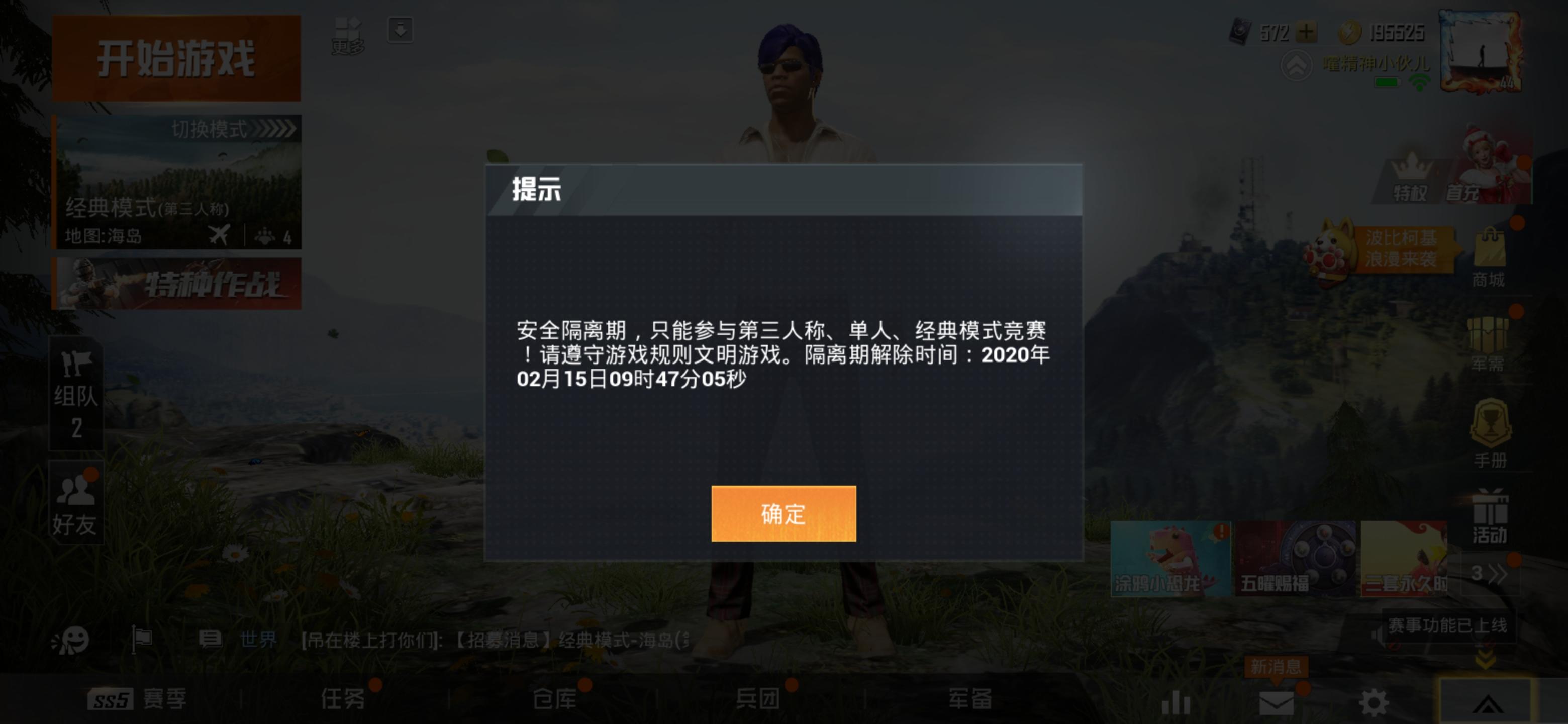 我的和平精英账号无缘无故就被隔离了,上周隔离结束,我一登进去开了一把团队竞技,又给我秒封,封了一周,今天刚好要解封,不知道还会不会继续封,我也没有开外挂或者用外挂软件啊,现在和平精英的封控也太差了吧,好多人都被误封了,麻烦你们认真核实!!!