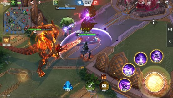 为了给各位玩家营造独特的竞技氛围,《漫威超级战争》还内置了动态场景地图,附带各种效果不同的野区资源,以及击杀后可召唤并向敌方基地推进的火焰巨人“苏尔特尔”等等,不仅为玩家提供了更多的战术选择,还使游戏对局增加了不少观赏性。