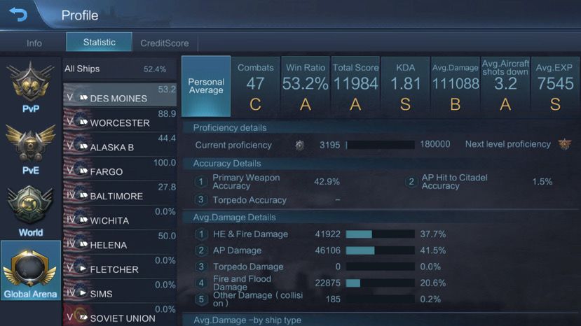 固然,得梅因本身拥有相当优秀跳弹角及转正的ap弹,但是,请不要放弃利用你的高射速和40穿he带给对面较为稳定且快速的点火能力。得梅因除了对于一些近战or需要快速击杀的bb目标使用ap弹,更多时候需要依赖点火能力打出损管或者dot伤害(尤其对于查理曼这类完全弱dot目标)。在针对bb上,除非你要快速击杀目标,不然he在针对大面积覆盖32船壳的目标上都要完全优于ap。