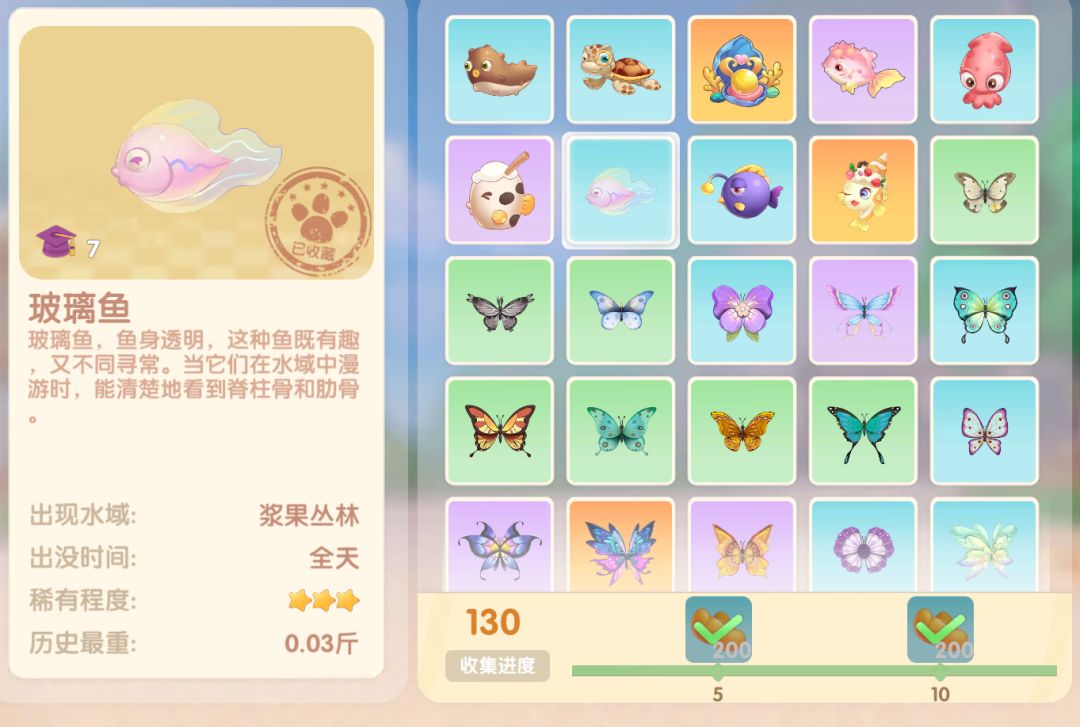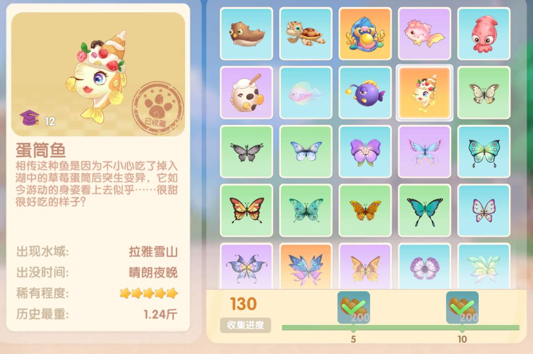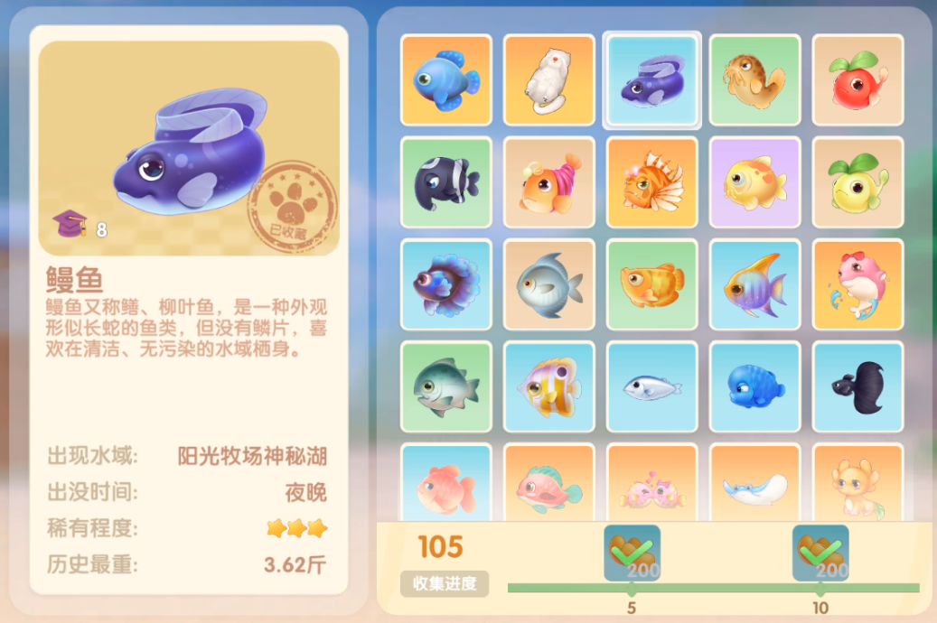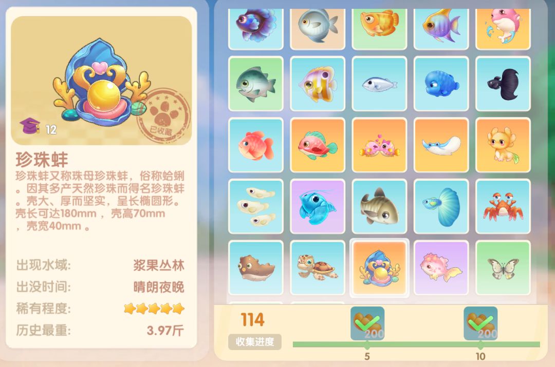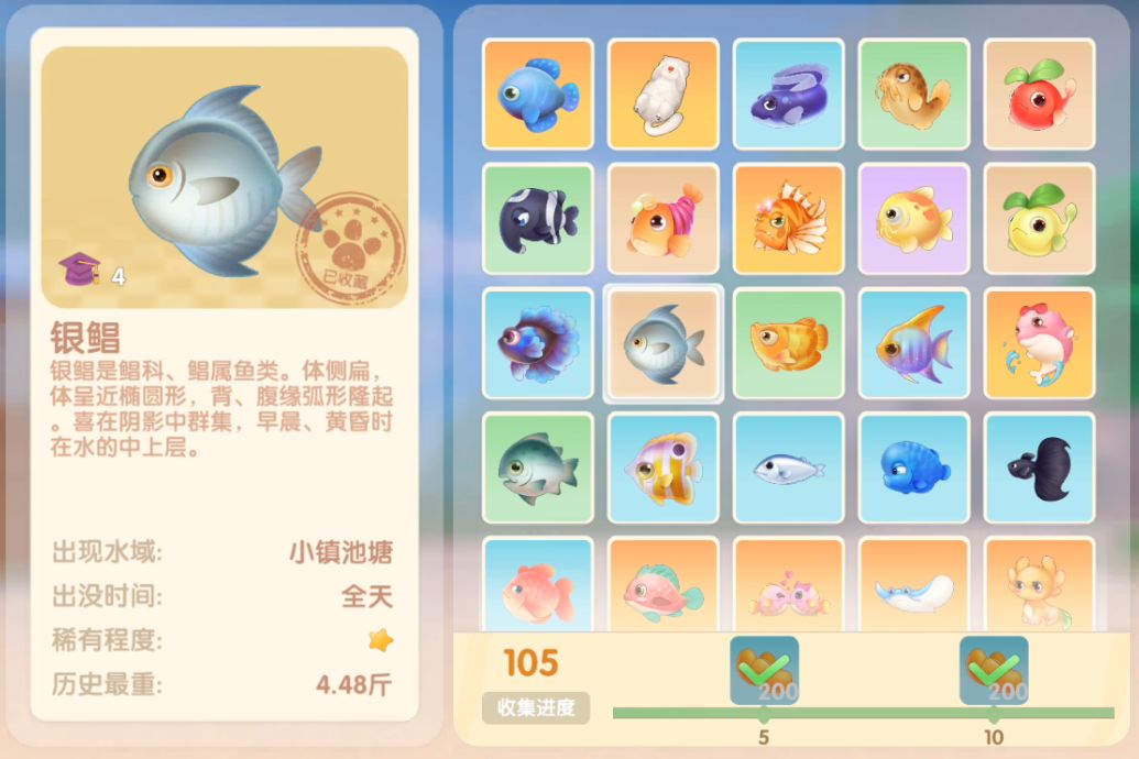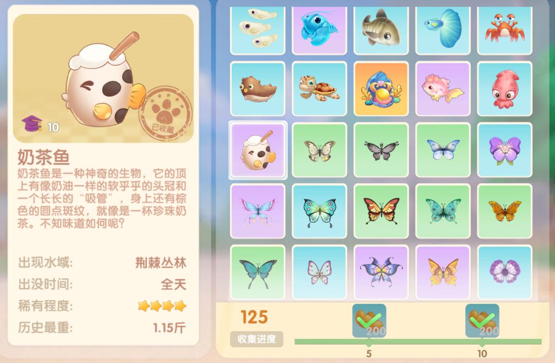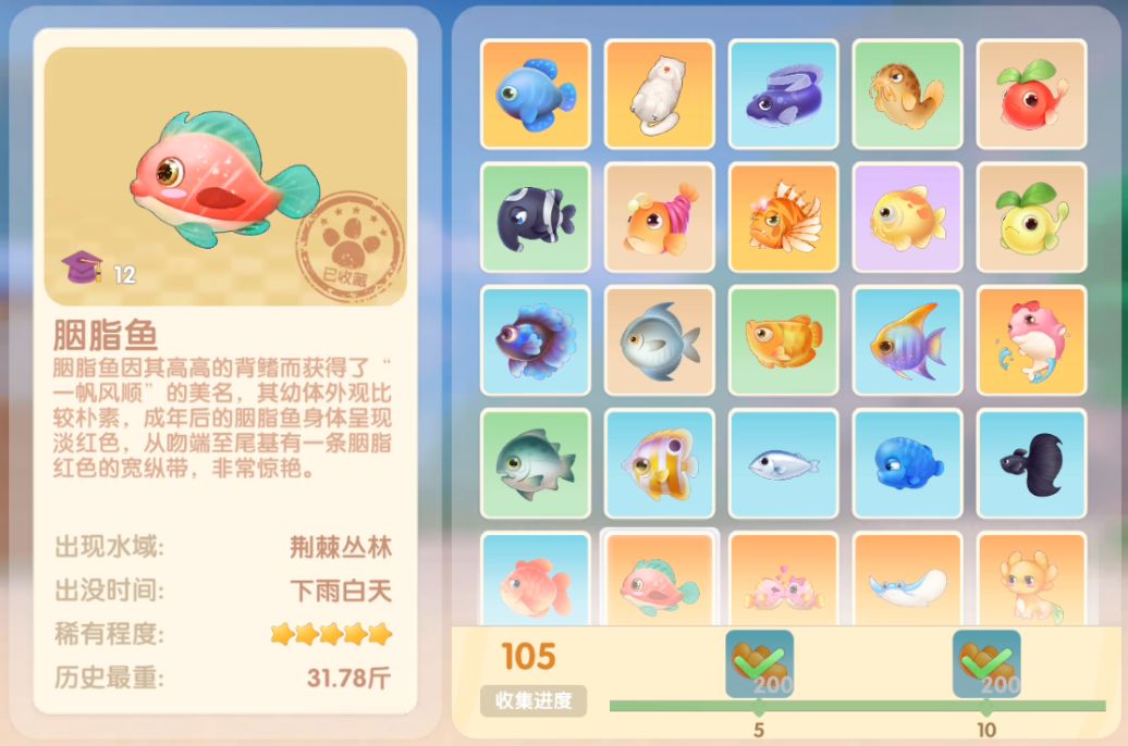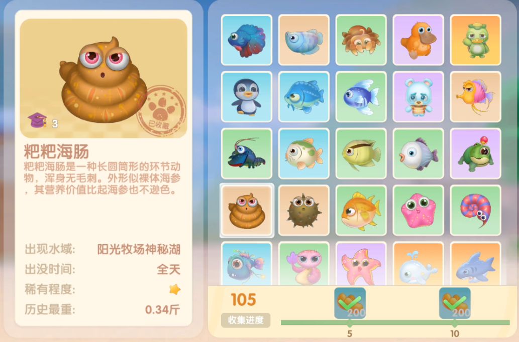 钓鱼要点1.钓鱼场地有五个,分别是家园 牧场 丛林 雪山 小镇池塘在前期图鉴较少的时候五个地方都钓一下,后面有缺的再看帖子去钓就好,家园特产的五种鱼锦鲤 金鱼 狗鱼 大闸蟹 小龙虾可优先收集