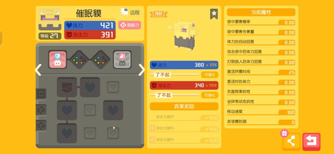 最后一个是我谈不上喜欢的末入蛾(摩鲁蝶),不过是动画里还是游戏里出场率都不高,况且在动画里往往都是作为反派使用的宝可梦出场,更谈不上好感存在了。在本作里(原作中)作为本身就能学会超能系的虫子可能是它的一大看点了。本身也是融入它的看点,唯一能看的技能只有超能系,本身也能学会超能系的大招精神强念可能是它最后的倔强吧。冰菓的选择还是同上不需要冷却时间以及增加伤害,攻击或者体力随便选3个就行了,或者增加弱化的概率也是个不错的选择。