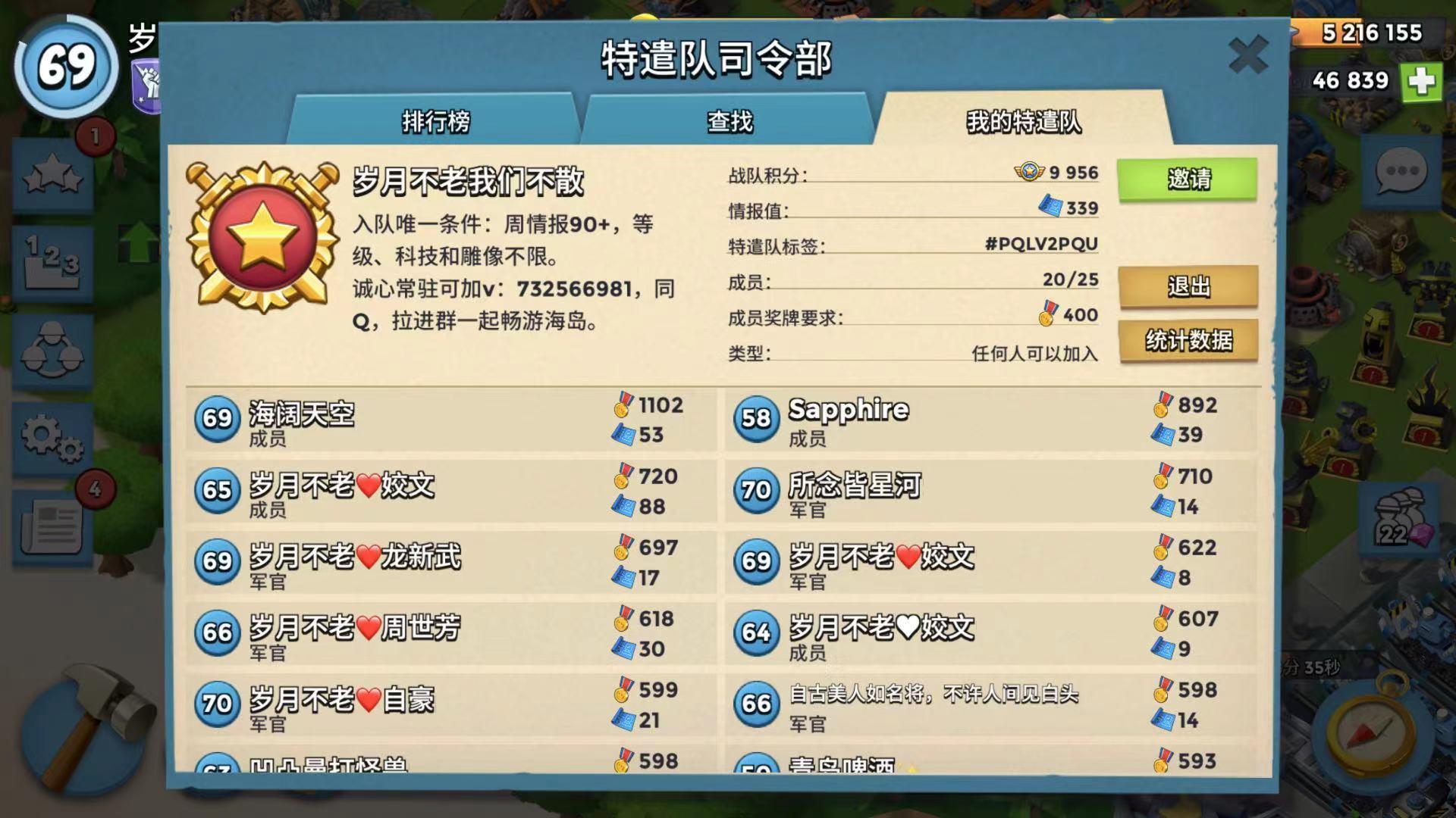 10人队刚升的25人队,位置很多,只要周情报90+,其他没有任何要求。情报够,副本奖励28+钻。