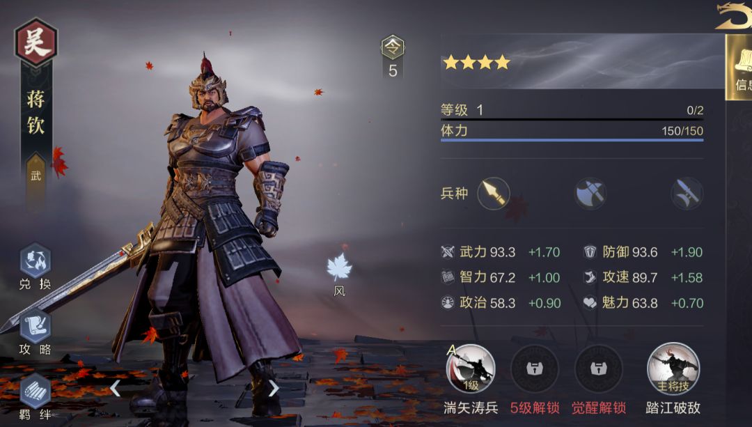 效果:随机对1名敌方武将造成105.0%武力伤害,若目标已处于水浸状态,则本次攻击附加50%暴击,技能冷却20秒
