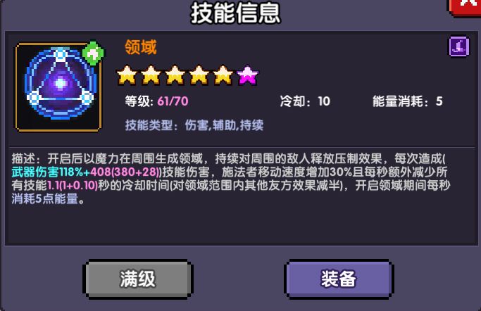 【领域】:领域有两个作用,一个是提高跑图移速,第二是加速技能CD,因为我推图经常会遇到进入下一个房间后【御灵-守护】还在CD中的状态,在那罚站几秒的过程很尴尬,带上【领域】加速技能CD就解决了这个问题,同时还能增加移速,一举两得。