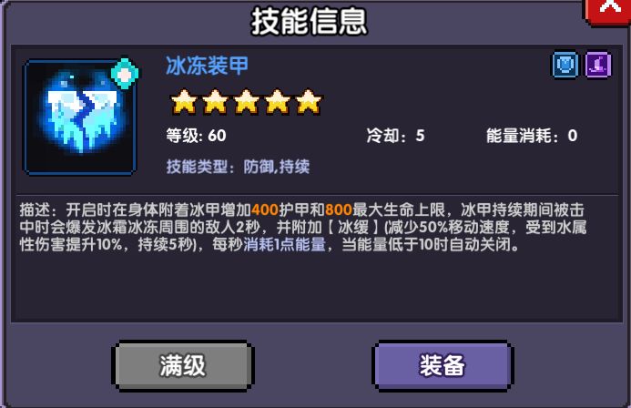 【冰冻装甲】:推秘境后期和魔界岛后期,怪物伤害越来越高,容易开始出现暴毙问题,【冰冻装甲】可以比较好的缓解这个问题,身边的怪物都被冰冻,会有一个比较好的输出环境。