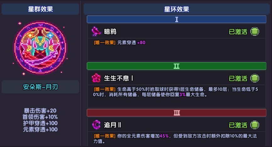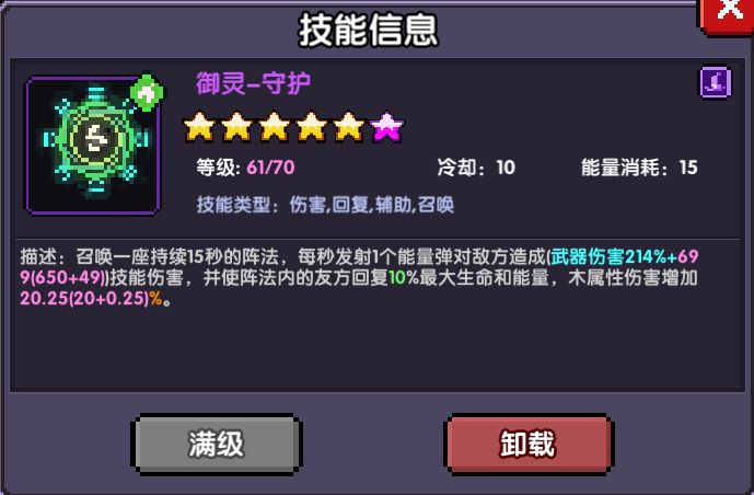 武器和符文效果都极其简单,纯粹的增伤,没有啥特殊机制。唯一要注意的就是符文六件套效果:输出时站在【御灵-守护】的范围内才能获得最大的输出效果。但是也并不意味着你要画地为牢,推图时为了躲避弹幕,进出法阵、反复横移的操作并不会有啥大问题。