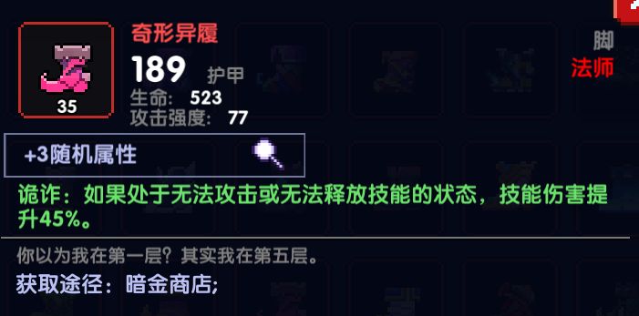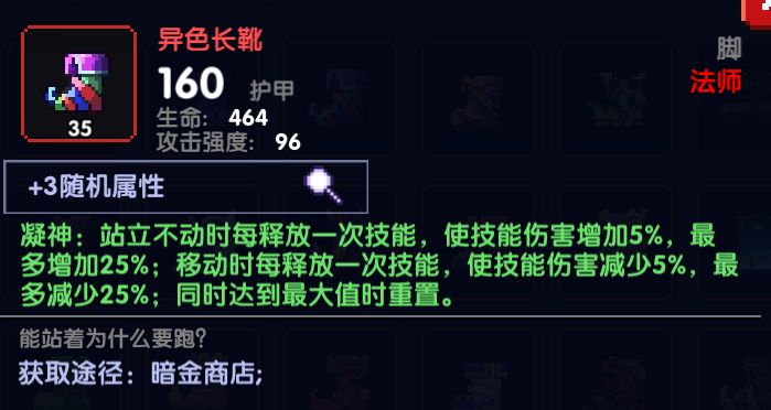 异色长靴:需要保持在站立的时候释放技能,本身对泡泡龙这个职业来说是比较契合的,但是存在减少技能伤害的不利因素,对刷图来说,得一直注意着这一点有点累了,我个人只推荐在打世界boss或者裂隙的时候穿这个鞋子,不建议在推秘境、魔界岛的时候穿。