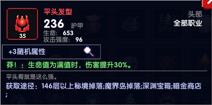头部:平头发型,属性选择(木攻+爆伤+随意)