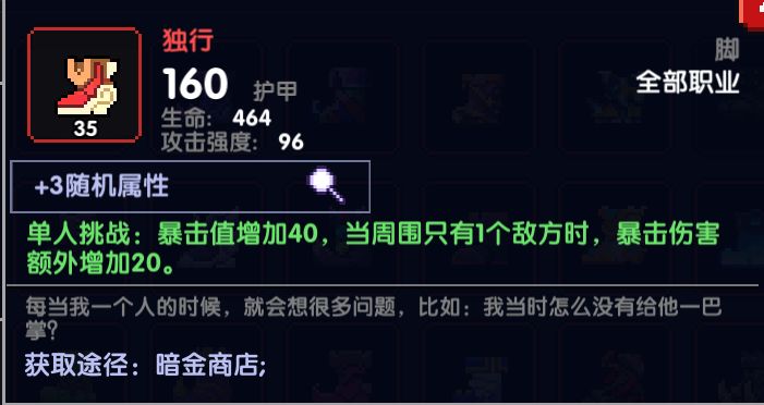 如果缺暴击,可以选择带独行: