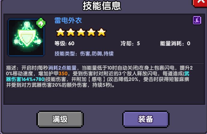 【雷电外衣】:提升移速+麻痹敌人,和上述领域、冰冻装甲有类似作用。