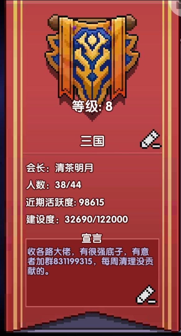 xdm,复活公会收人啦,收长期活跃的,周贡到一定要求送月卡,为复活公会的崛起一起努力呀😗。详情加QQ群831199315。