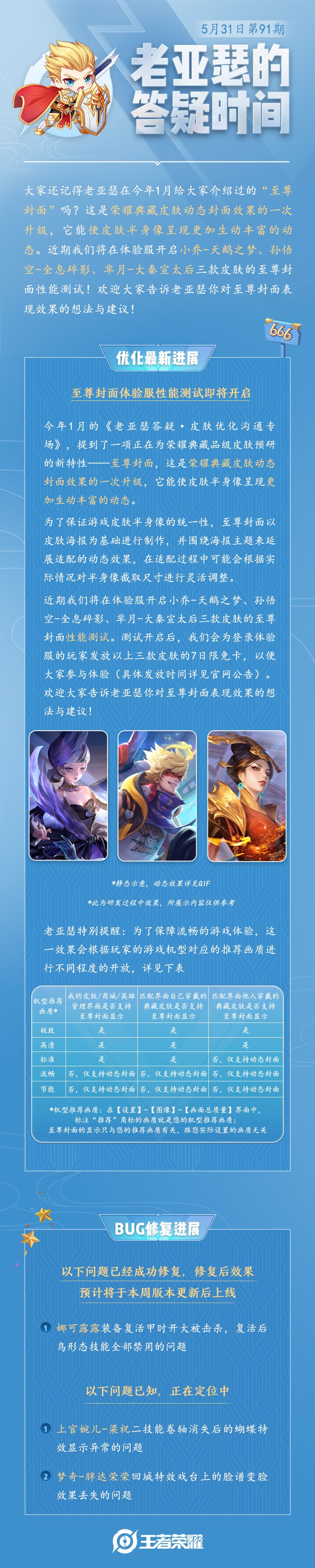 老亚瑟的答疑时间|至尊封面体验服性能测试即将开启