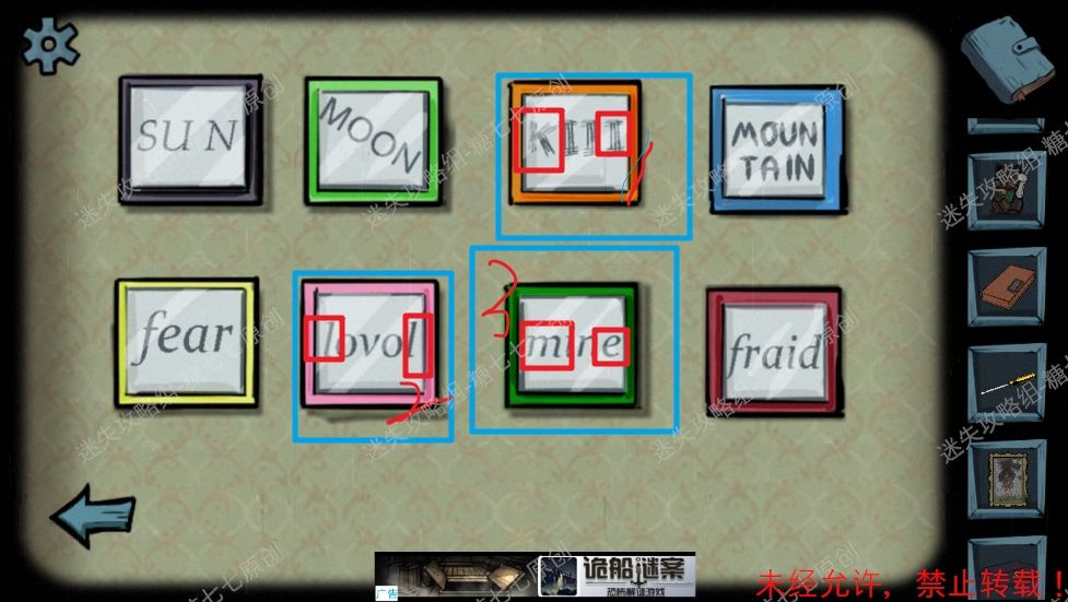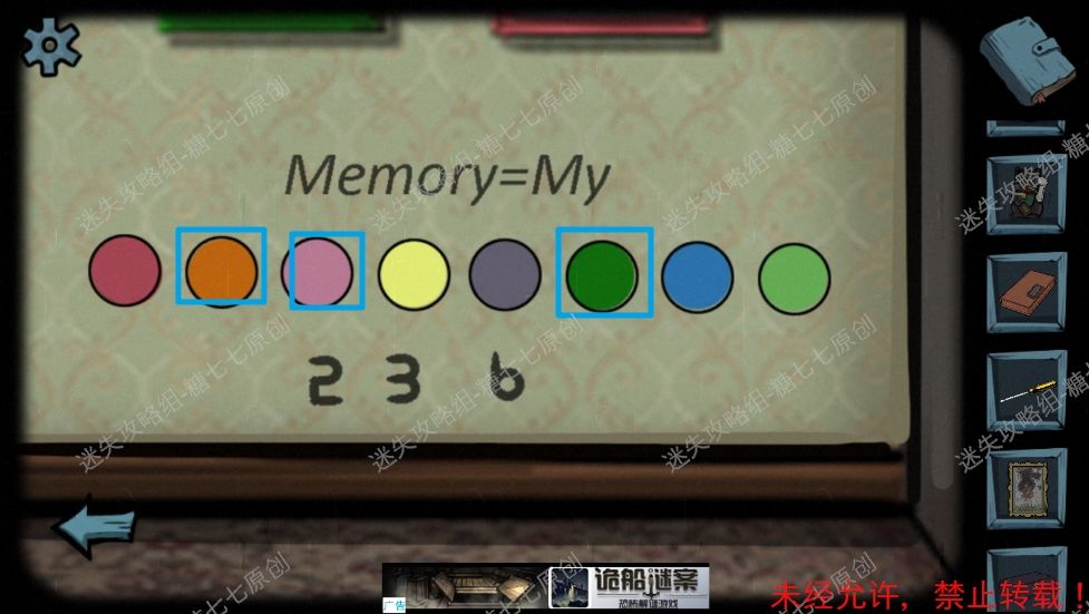 49、到走廊发现现在的照片已经看不见了,那就回到过去。50、根据墙上的英文已经缩减得知,是要英文单词的首尾字母。再根据一排颜色的236得知是橙色,粉色,深绿色相片。得知密码为;kilme。50/501