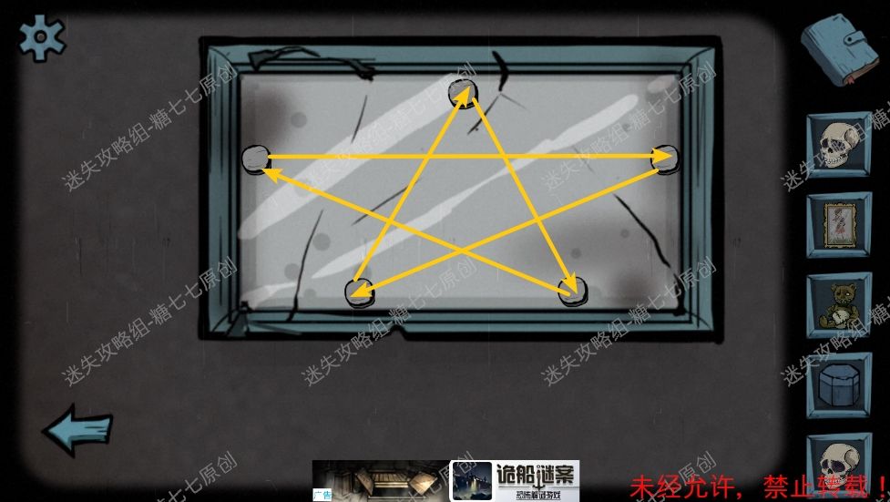 65、把红宝石装到熊的眼睛上,可以看见有一条线再画五角星。然后在后面的镜子的顶子上点出五角星的顺序,拿到钥匙。打开房门65