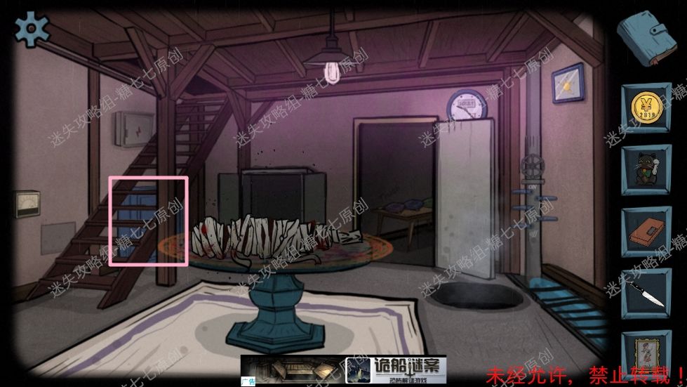 66、点击桌子的下面,按照桌下压得纸得提示,横着竖着斜着都要有不同的颜色,不能重复。解密方法有很多,这里提供一种。拿到钥匙,打开楼梯旁的电表箱。66/661
