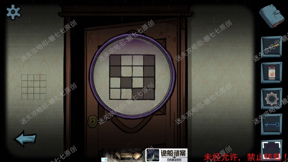 18、然后点击楼梯,再点左侧按钮,去左边房门,然记住门上的图案。18