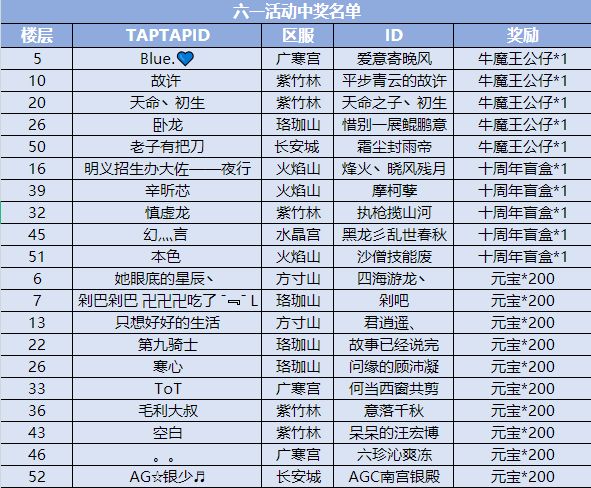 虽然实物奖励原本仅设立了三个名额,但是锦鲤婷酱决定加送获奖资格,希望更多的小伙伴们可以感受到六一的快乐,获奖名单如下:
