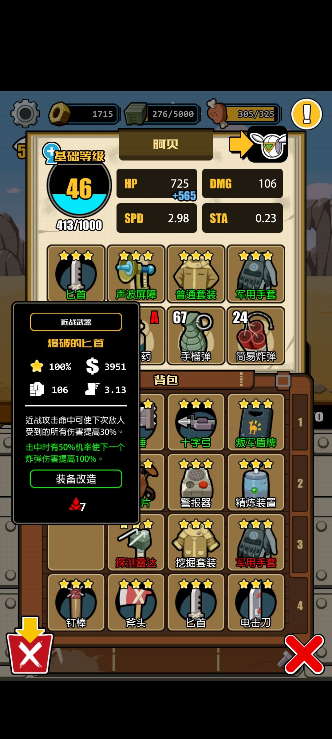 缺点:体力消耗快 匕首命中及爆破特性触发不稳定