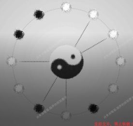 1.第一步,我们一次选择的六个圆点分别为,上方选择四个圆点三个白色的圆点夹着一个黑色的圆点,右下角选择两个黑色的圆点,六个圆点全部选中,点击中间的阴阳太极圆盘,颜色发生变化,开始下一步。41.1