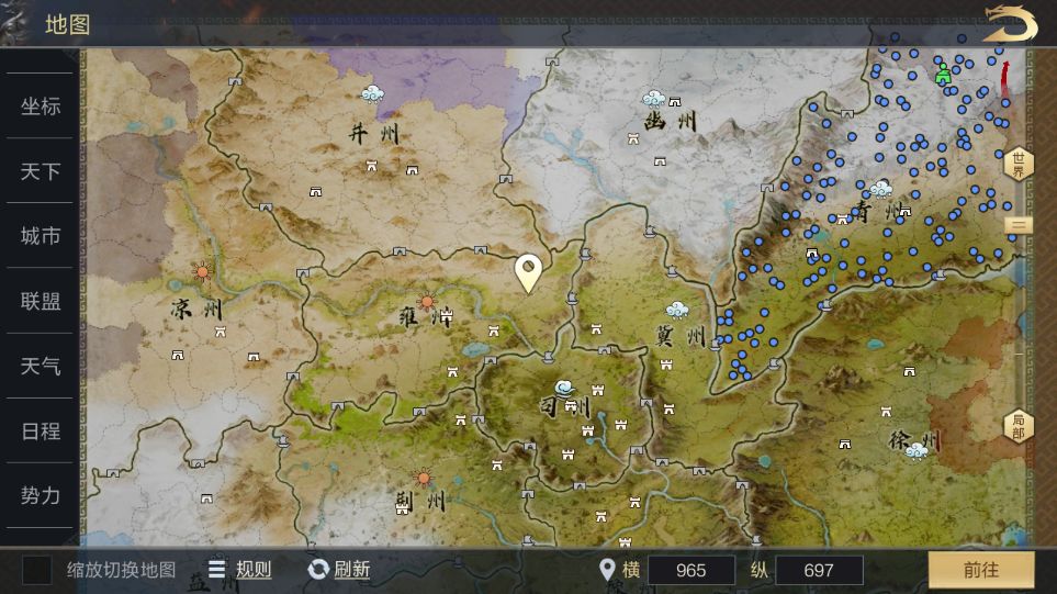 该出生地从地形上而言,多以山地为主与凉州、荆州、交州等隔开,是易守难攻之地,对于种田玩家来说是首选的底盘,但对于想成就霸业的主公却不建议选择,一方面地形虽险要但也出不去,另一方面是距离洛阳最远的州之一了。