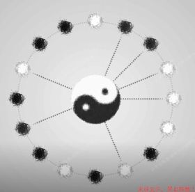 6.第六步,这步是最后一步我们需要选择的圆点就非常简单了,我们只需要选择所有的黑色圆点,点击中间八卦,颜色变为白色。75.6