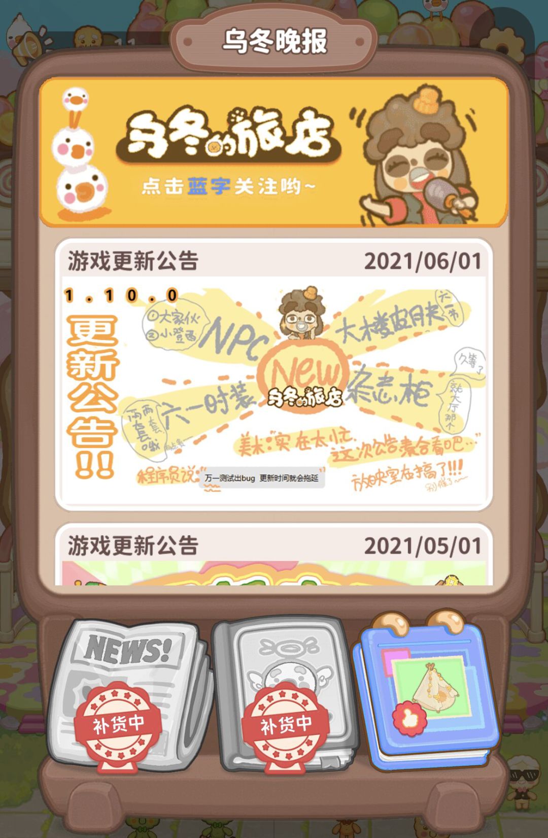 乌冬新时装、旅店新外观,带你重返童年时光!1.10.0版本更新来袭