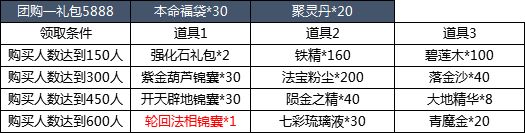 【活动简介】活动期间内,道友们可购买活动界面的团购商品。当购买团购商品的人数达到一定数量时,购买过该商品的道友们可以额外领取相应奖励。