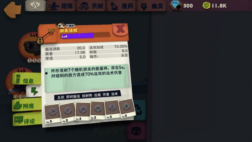 环形发射7个随机游走的能量球,存在5秒。(投射物)