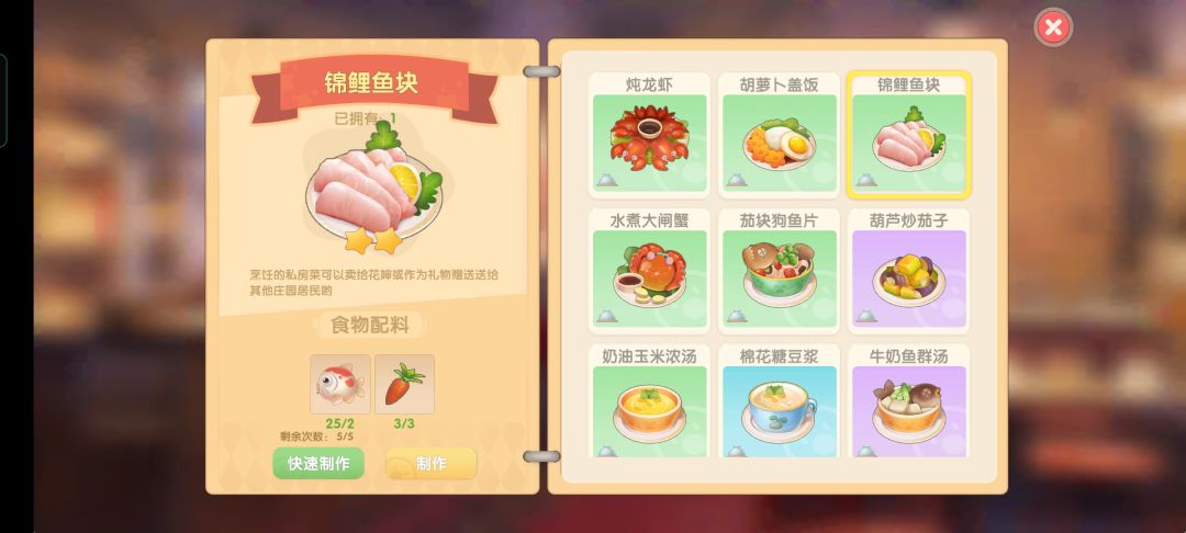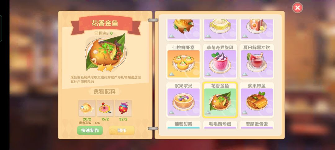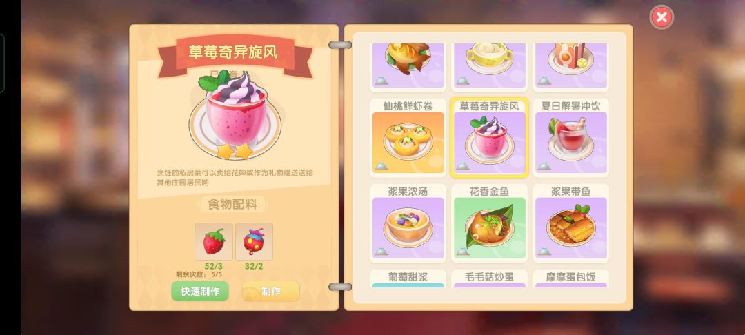 因为最近有很多小摩尔问到这个,就连忙肝出来了,菜谱的获取方式主要就是升SMC送的和自己研究的及少数任务给的,研究菜谱只要主材正确就会加成功率,火的大小没有影响,菜谱正确的情况下研究可以省食材,若是不想手动做菜来获取日常SMC经验也可选择故意研究错菜谱来增加经验(摸鱼小技巧get!)