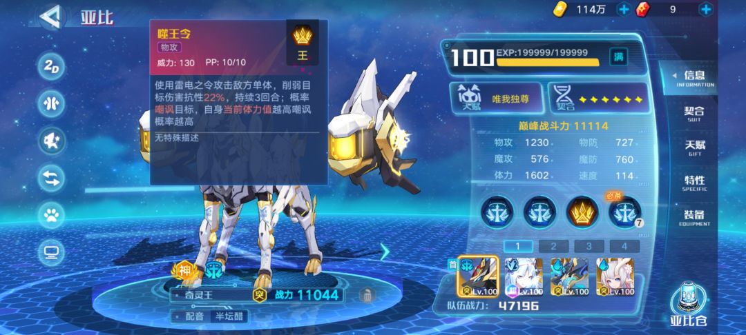 巅峰塔150层前必备宠物,限制对方提属效果,在对面属性削弱后有特有限制,让对面无法强化。
