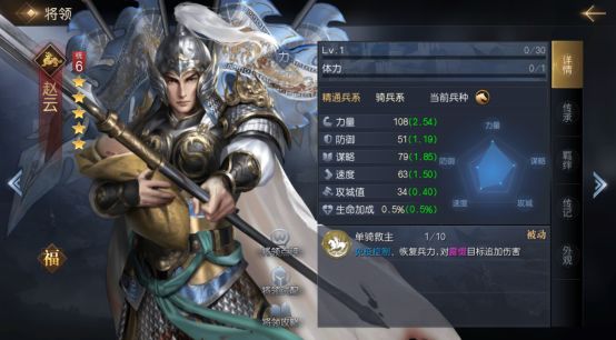 七进七出可让赵云免伤。成功抵御还能有几率触发群攻,增加赵云伤害,为主将恢复兵力,一举多得。外交干涉可进行2次输出,弥补赵云因携带防御技能而导致的伤害不足。