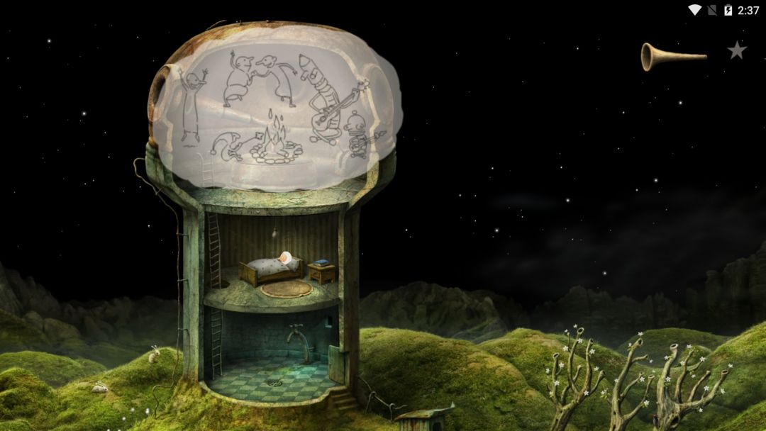 (05)主角帮助三位僧侣打败邪恶僧侣后,回归家园熟睡的梦境场景(含机械迷城主角)