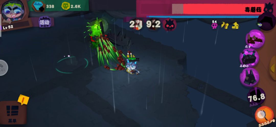直入主题,这玩法思路还是围绕伤害天花板-毒转,然后飞弹插减魔耗石头增加投射物数量,利用飞弹高数量高hit快速叠毒,初期效果如下,