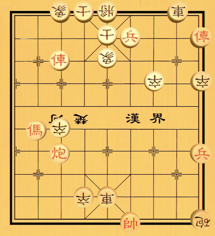 小型排局,原谱红非连照胜,红方起手即弃车,精妙异常,但棋图有问题,主要是缺少了黑方7路卒,红方不能胜。清代名谱《百局象棋谱》辑著者三乐居士发现了这个错误,舔卒后收入书中。
