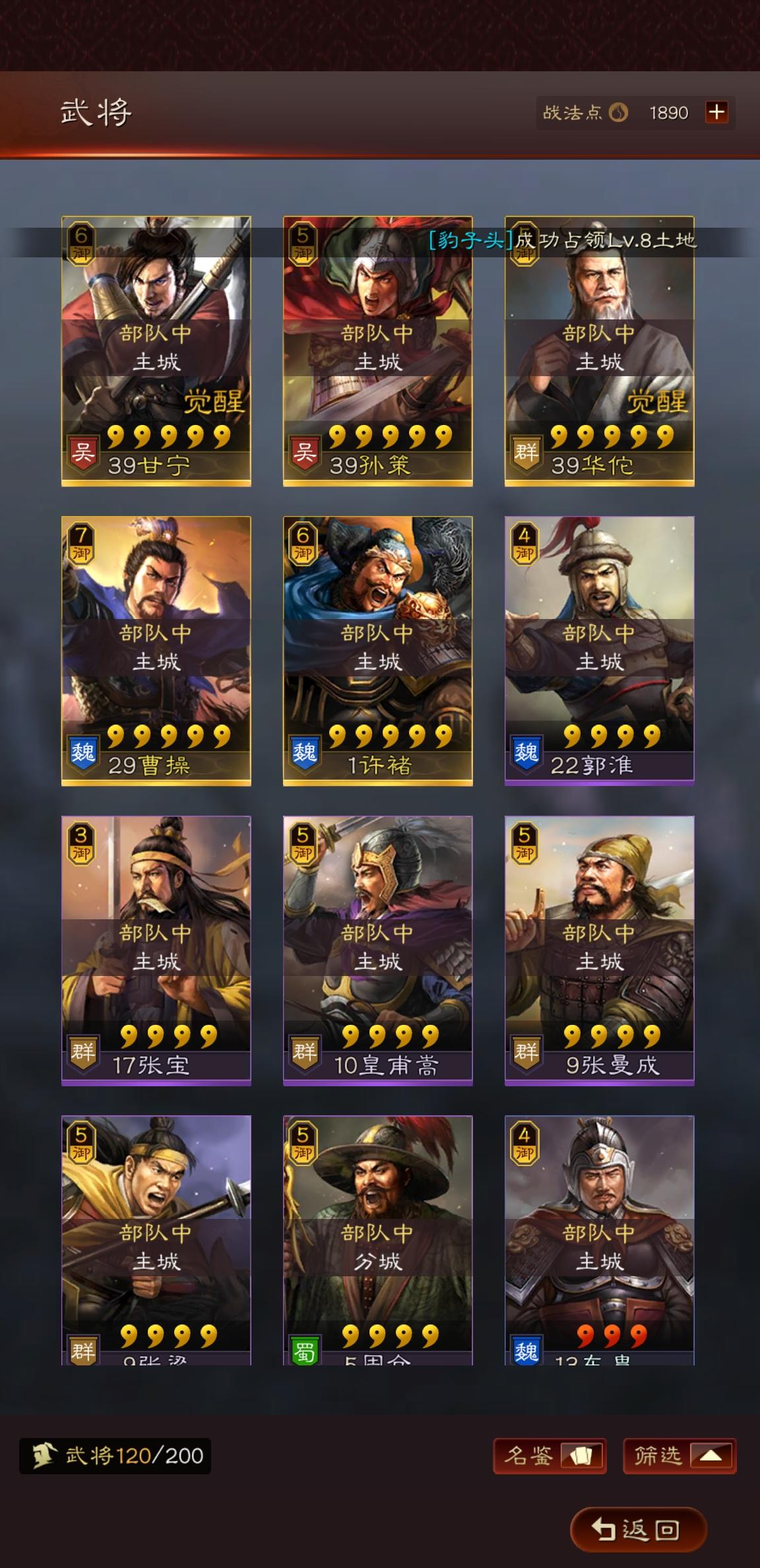 S1 昨天刚出的许诸,现在应该可以曹操+许诸+华佗。主要是战法配什么,最好是A战法,S的目前没将也拆不起。之前玩过率土没玩过三国志,所以不知道战法哪些比较好