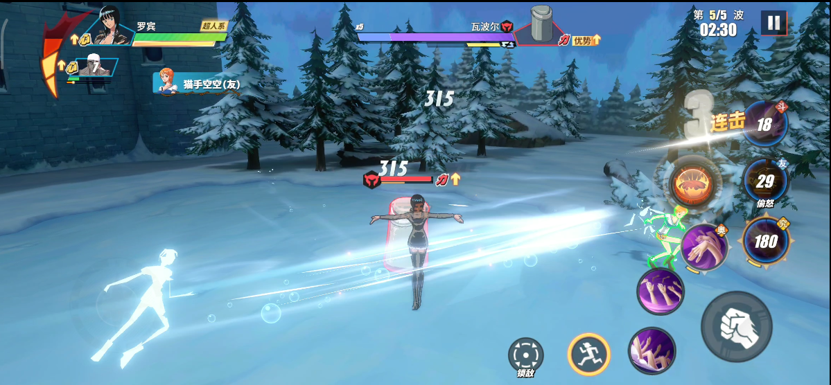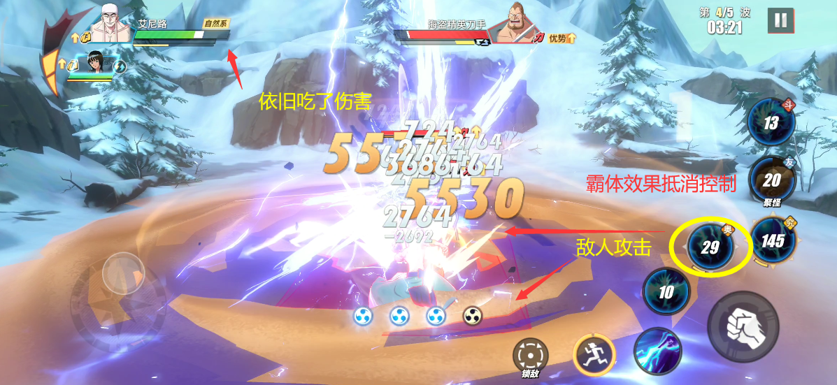 这一波与第三波一样,按照相同的方式即可过关。有一点需要注意,由于究极奥义技能已经使用,所以我们可以使用普通奥义技能输出。输出时要小心敌人的攻击,虽说霸体可以无视控制,但是敌人的伤害还是会吃的。