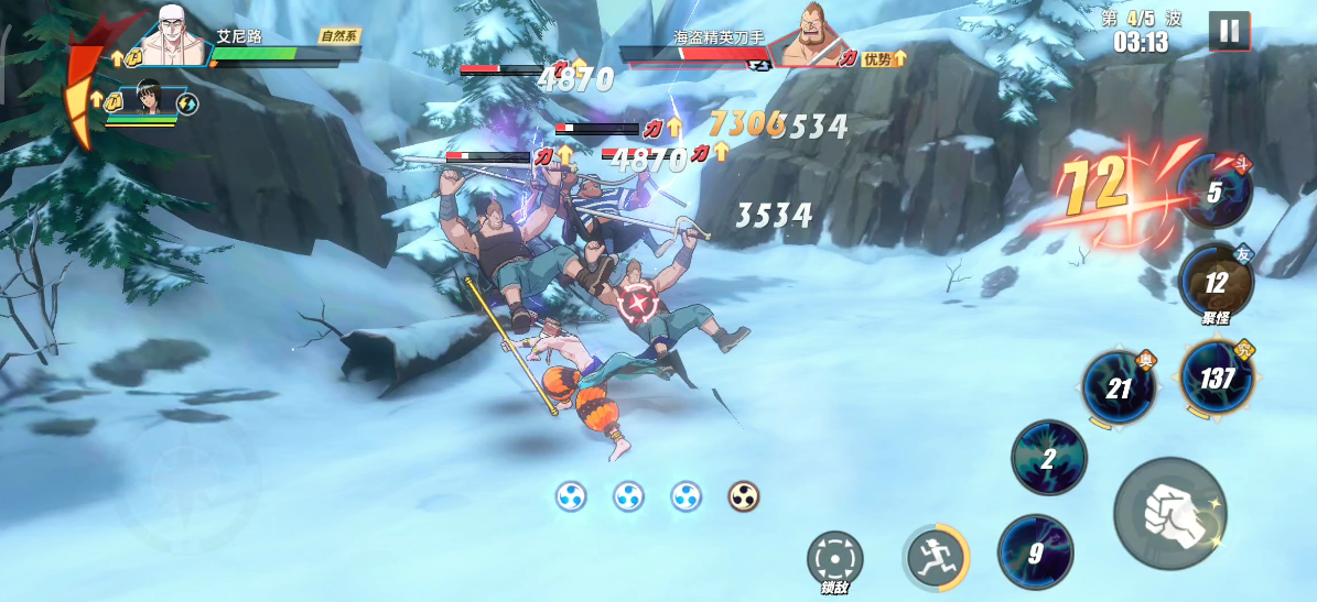 这里聚怪之后,可以直接使用奥义技能,再搭配其他技能输出。在战力不足的情况下,玩家可以替换出另一位伙伴登场,然后再打一套技能,这样可以在短时间造成大量伤害,快速过关。