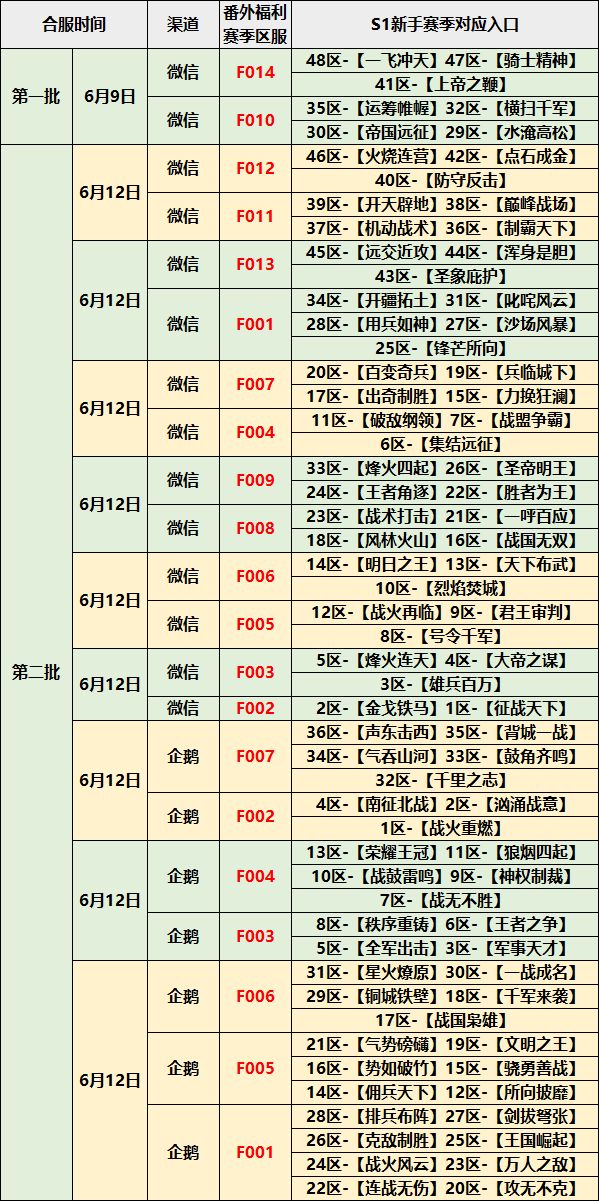 S2赛季首批和第二批合服大区名单公布