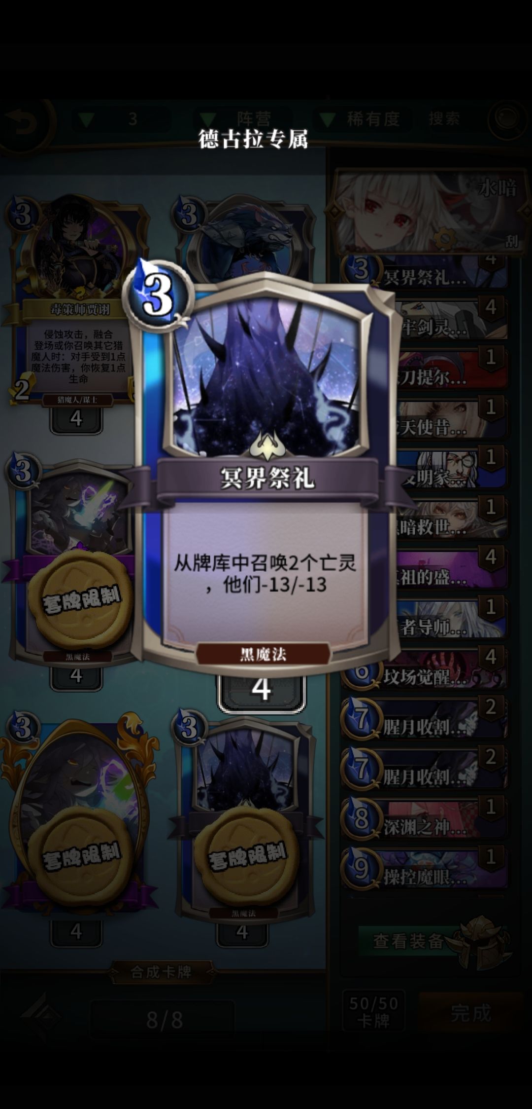 坟场觉醒的伤害效果优先级极高,4个坟场即意味着我们的终结能力不比红色职业来的弱。