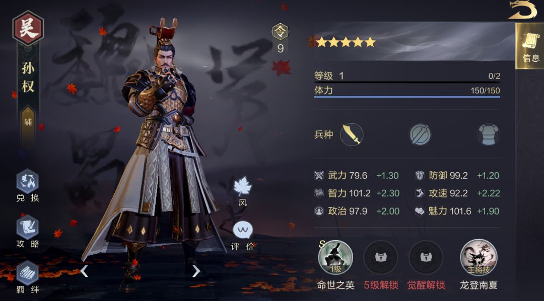 “最快的男人”,完美的被动武技,高额的攻速和武力值,在任何队伍都是主力输出。