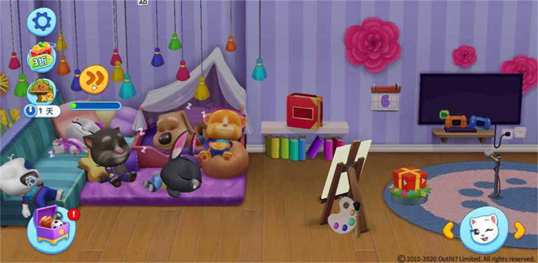 《汤姆猫总动员》是一款以汤姆猫为主题的休闲养成游戏!“会说话的汤姆猫”家族六位成员汤姆猫、安吉拉、汉克狗、狗狗本、金杰猫、贝卡兔全部到来,玩家可以尽情和它们玩耍互动,在美轮美奂的3D世界探索遨游。这款游戏的玩法非常丰富,出了可以体验游戏中的横屏互动小游戏外,玩家还可以通过自定义来完成游戏内的环境装扮,这种创新给玩家带来了前所未有的体验,乐趣满满!