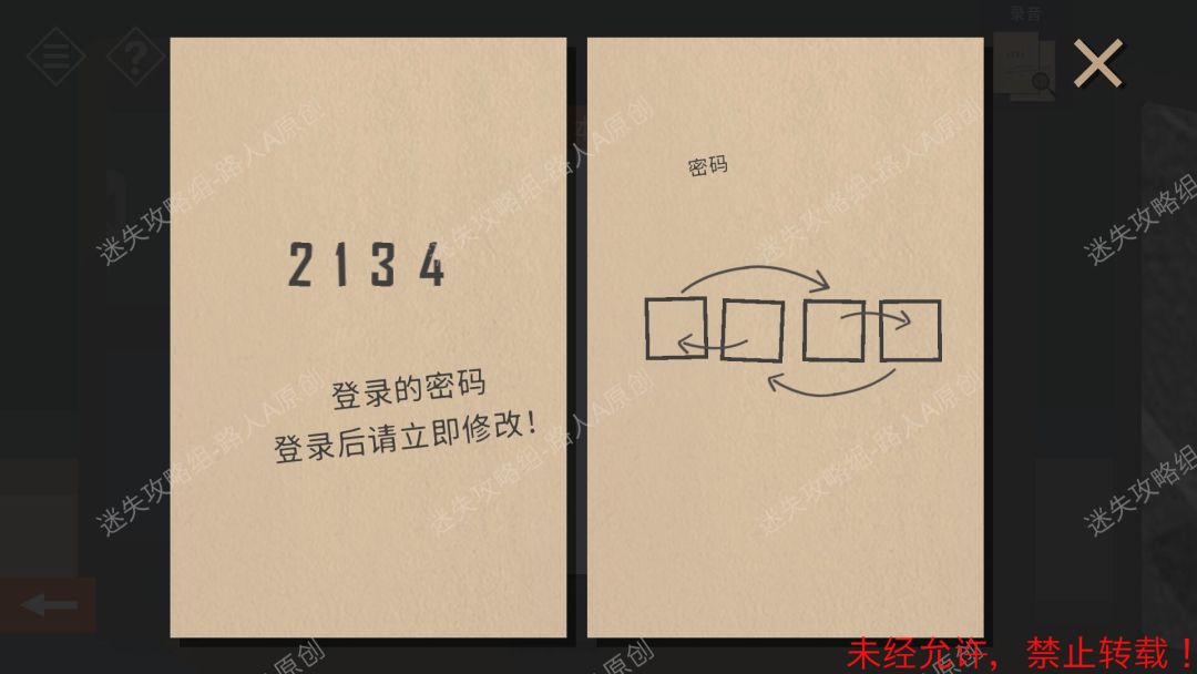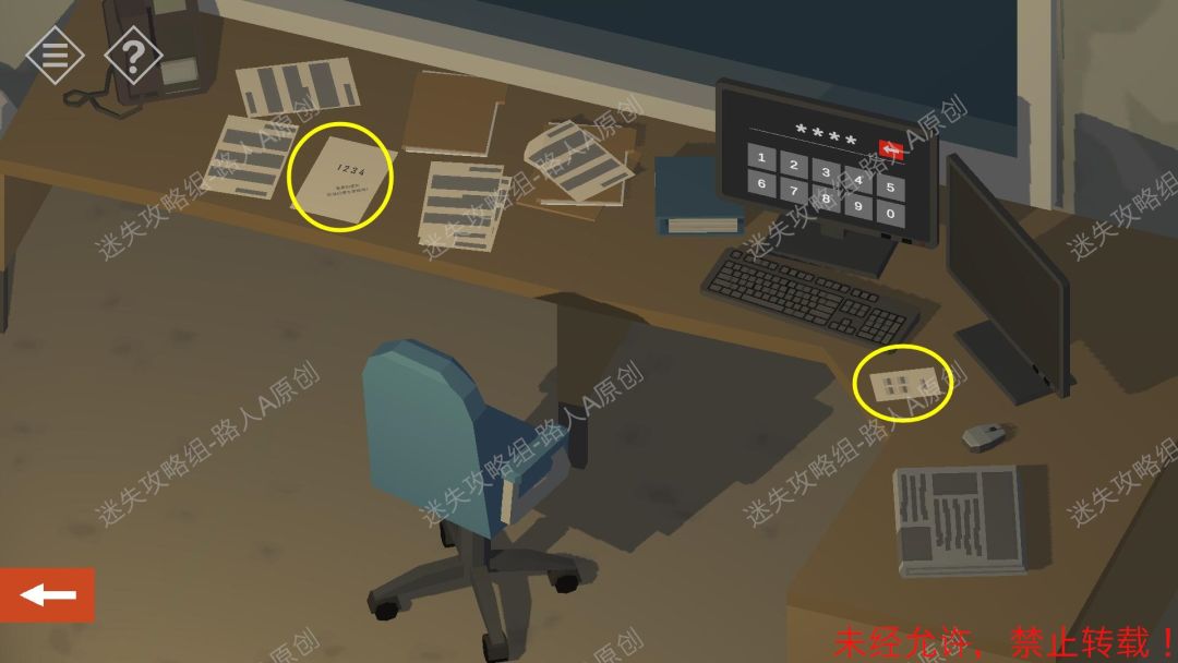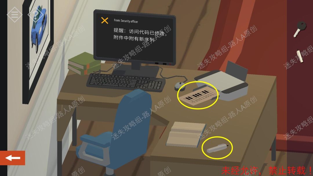 3.移开桌子上的键盘和文件,拾取两张密码相关的【纸条】。3.1、3.2