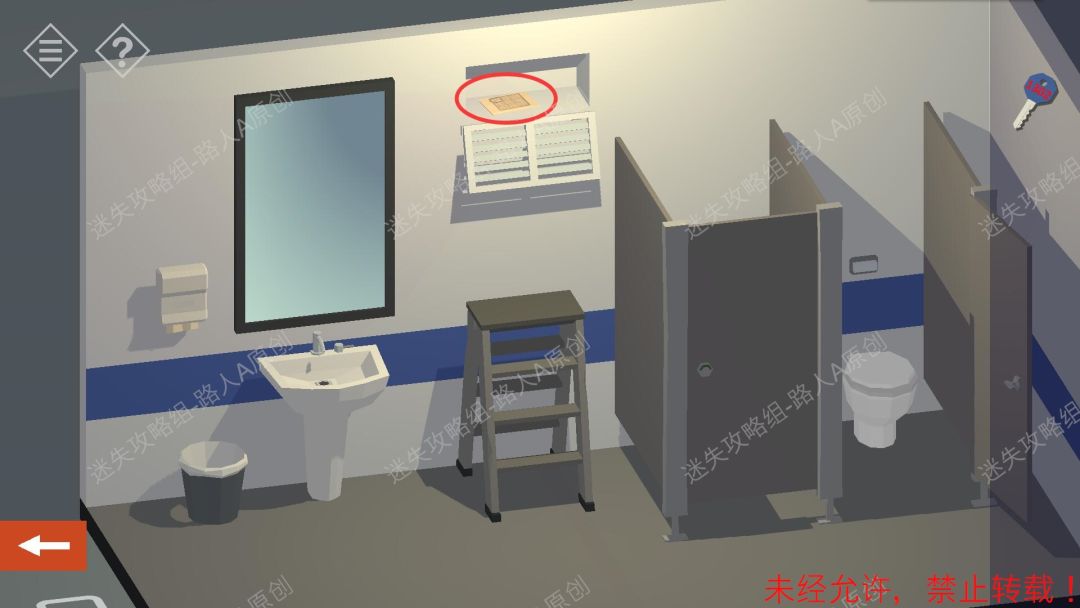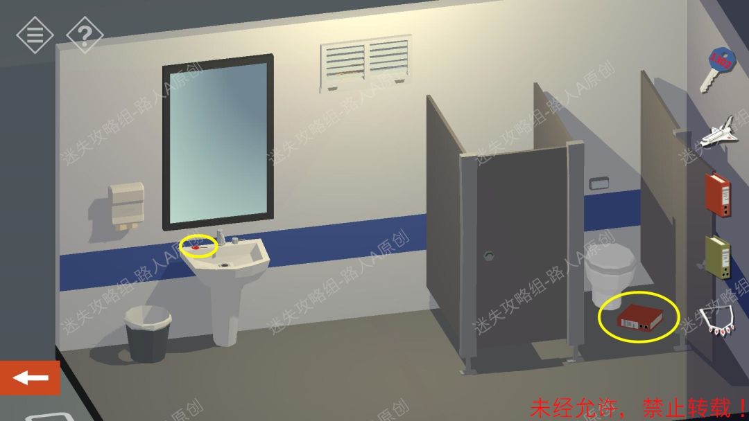 7.离开会议室,用【灰色钥匙】打开二楼的厕所,拾取隔间的【文件夹】以及洗手池的【红色钥匙】。7.1