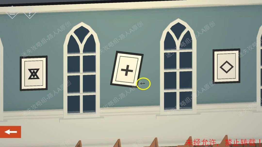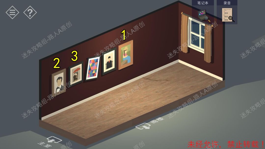 2.点击墙壁上的挂画,注意其中一幅画的右下角出现【箭头】,根据箭头的方向排列这些挂画,得到密码。2.1