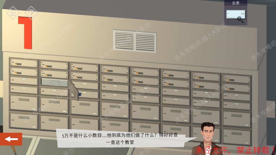 20.打开金库的大门,进入金库。查看墙上的指示图,找到【1302】对应的柜子。20.1
