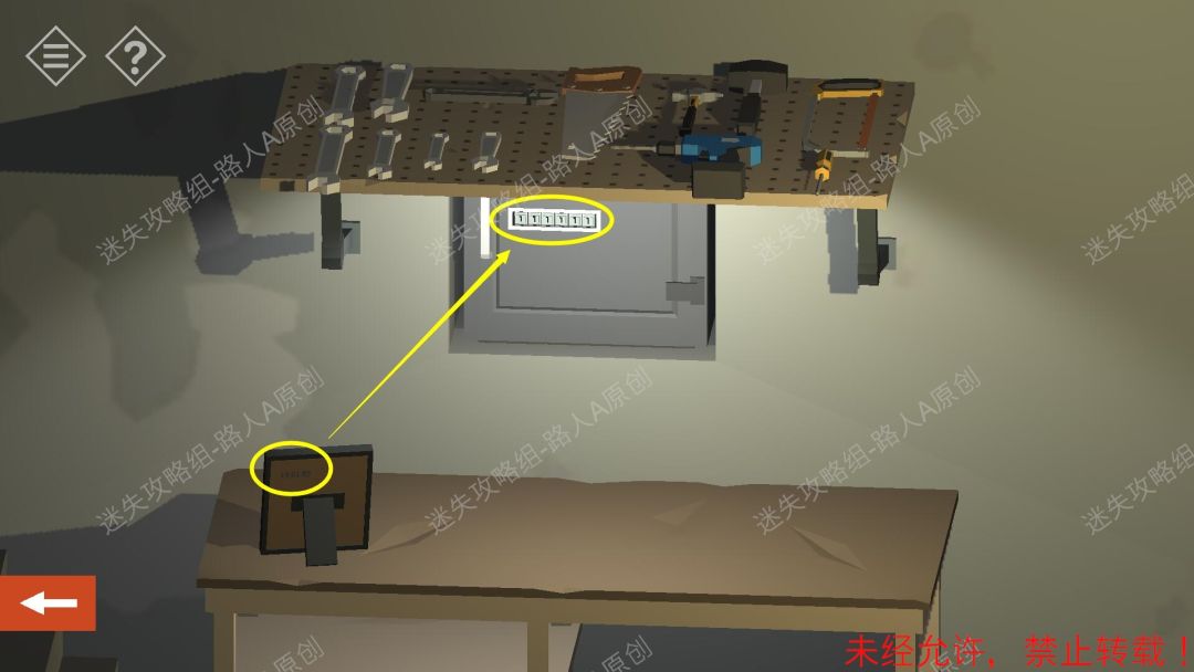 21.进入暗门,点击红色亮灯,打开电闸。然后点击水管的红色阀门。22.点击工具台,点击【扳手】,然后根据相框背面的日期,在保险箱输入密码【190185】,获得【钥匙】。22.1