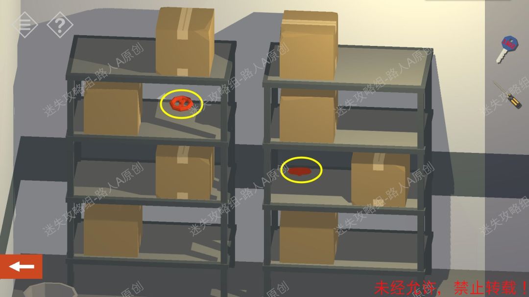 9.前往一楼大厅,用【红色钥匙】打开门,进入储藏室。10.拾取地上的【梯子】,然后移开架子上的纸箱,拾取2个【阀门】。10.1