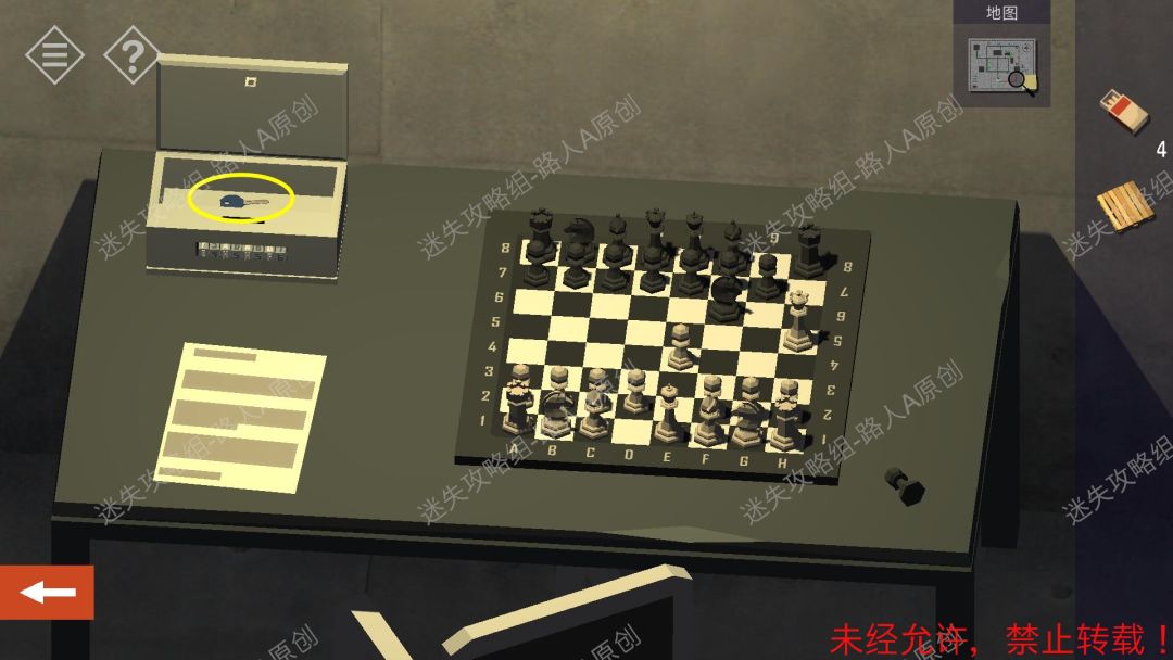 8.点击棋盘旁边的箱子,根据下棋过程,输入密码【E4H5H5F6】,获得【蓝色钥匙】。8.1