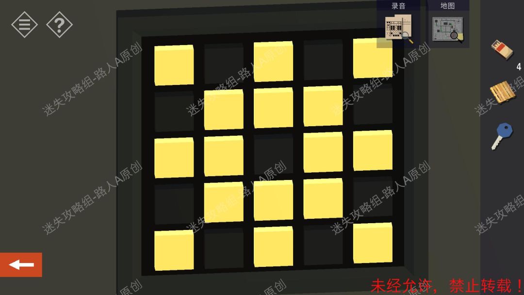 4.点击墙壁的装置,解决谜题(使所有方格都变为绿色),获得【黑色钥匙】。4.1